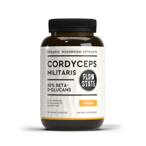 Flow State Cordyceps mushroom capsules are made from fruiting body only and undergo dual extraction using both hot water and alcohol. This method draws out a rich profile of active compounds. Cordycepin, unique to Cordyceps, is linked to cellular energy production, while beta-glucans are known to support immune function and overall vitality.